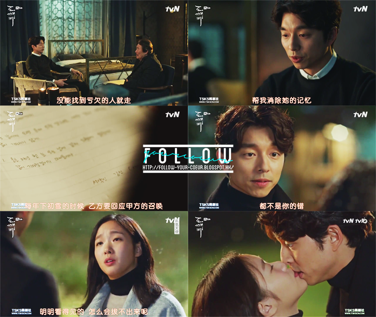 最後恩卓還是答應了鬼怪要幫他拔劍,可是恩卓怎麼拔也拔不到,她以為是像童話故事書的咀咒一樣,要吻過鬼怪才可以拔,所以就吻啦!♥