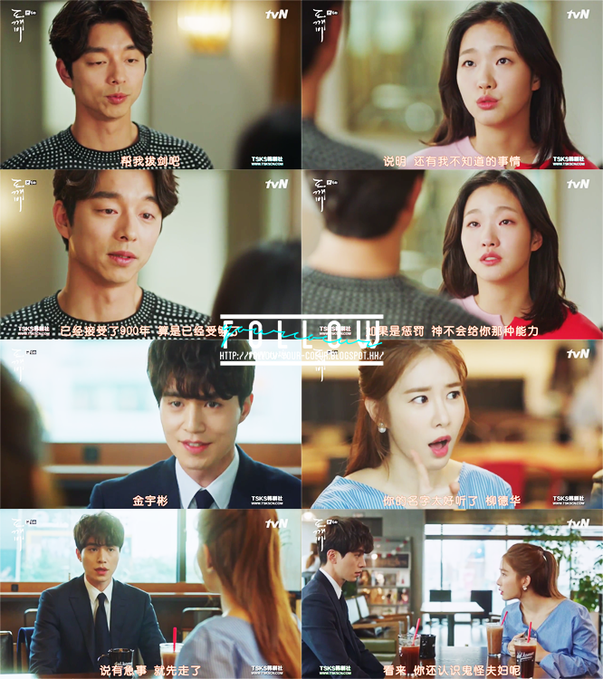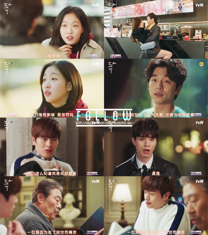 原來前世犯了很大的罪才會成為地獄使者(?) 使者被鬼怪說完之後就不開心了。(這對真的有點萌!!XD) 身份上來說鬼怪跟使者根本就天生一對,一個是忘了前世而痛苦,一個就因為忘不了前世而痛苦。