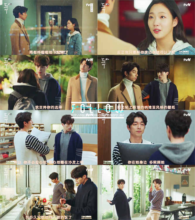 因為讓了房間給恩卓,鬼怪主動要求要跟使者同房 😛 (明明是很搞笑的場面,可是看到他交代使者好好照顧恩卓的時候又有點傷心 /_)