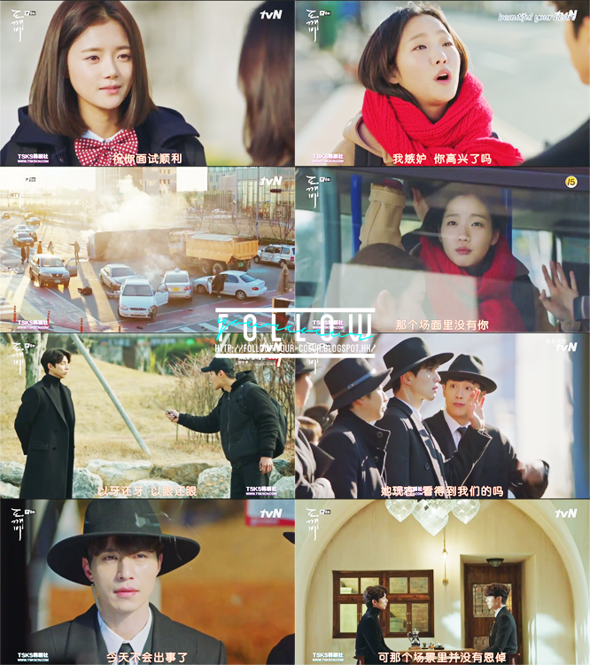 鬼怪又去了送恩卓面試,但是他又碰到上次撞到他的那個人,看到他即將會引發一場大車禍,而車禍包含了恩卓上了的那架巴士,可是鬼怪沒有看到恩卓出事的畫面。因為怕她有事,所以鬼怪臨時阻止了車禍的發生。而在車站等候工作的使者看到恩卓在巴士上也嚇了一跳,不過同時也意識到鬼怪會出手救她,所以知道這場車禍不會發生了。