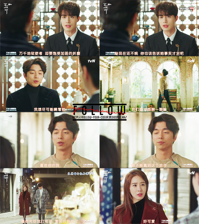 然後鬼怪跟恩卓去吃東西,恩卓想起那時候幫他拔劍之前,鬼怪好像交代後事一樣,便問他是不是想走。他說他不想走,不過遇見了鬼怪新娘的話,就有不得不走的原因。恩卓難得有個這麼疼自己的家人,她不想讓鬼怪這樣走了。(又不小心令鬼怪心動了~)