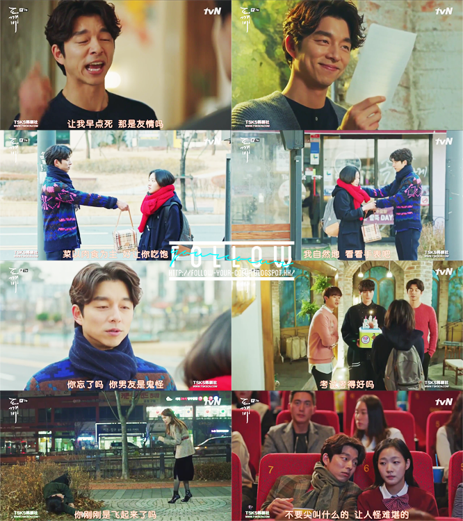 接著的戲院約會又是笑死我。鬼怪明明開場的時候叫恩卓看恐怖片的時候不要大叫,怎樣看著自己演的《釜山行》的殭屍就自己大叫起來。對於大叔的演技不得不服XD 我看得很歡樂~~~~