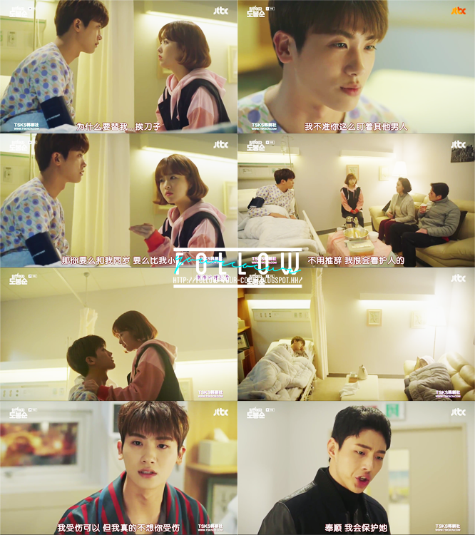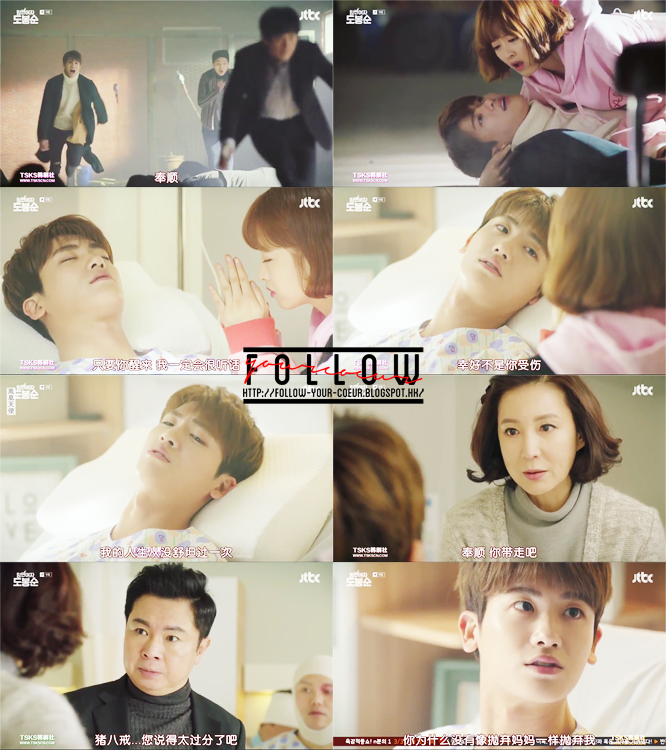 敏赫其實傷得不重,只是要對奉順撒嬌,所以只會在奉順面前顯得特別弱小。奉順媽媽來探望敏赫的時候說不知道要怎樣還這個恩情,叫他帶走奉順。(LOL哪有這樣賣女兒的!哈哈!) 然後奉順媽媽去了找那班黑幫算帳~ 白卓其實是個很笨的黑幫老大~ 完全被奉順媽媽的氣勢壓下去了~ 那個掉了4隻牙的跟班真的很慘哈哈,一直傷~ 現在像個木乃伊被吊起了XD