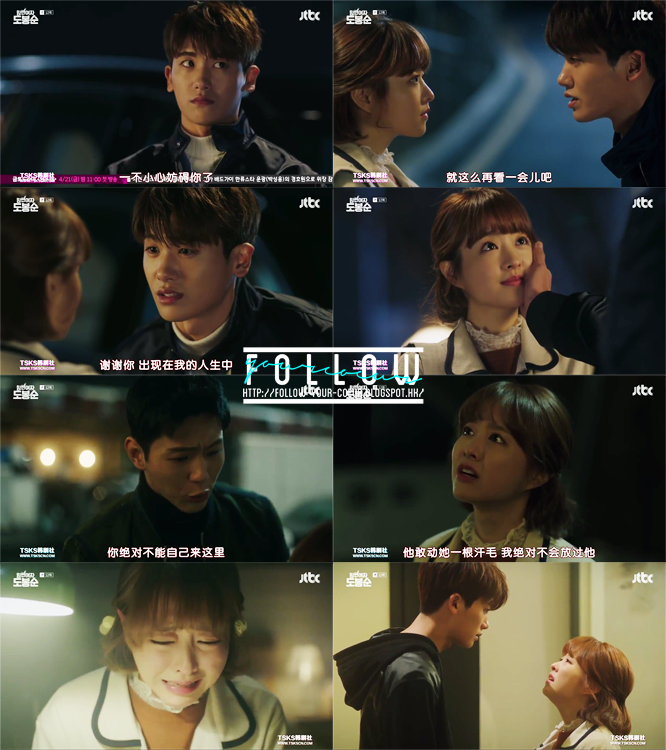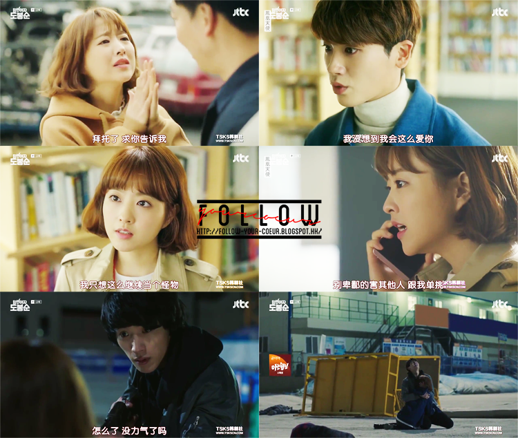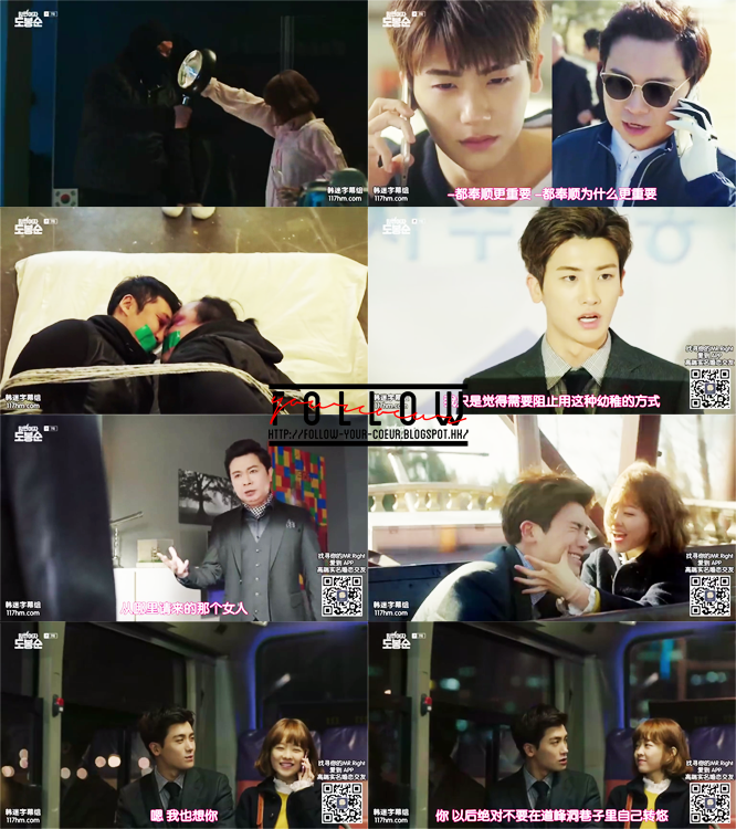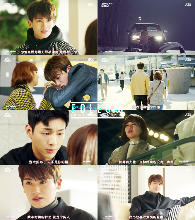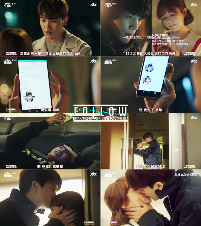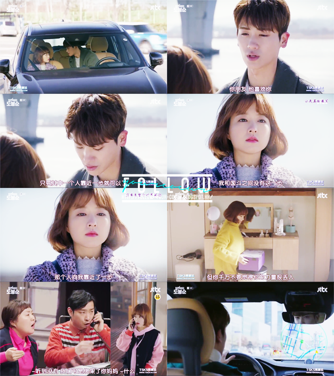 奉順各方面都不錯,就是有點笨,被白卓安排的詐騙電話騙到了=_= 她以為媽媽被綁架了…然後奉順爸爸打了電話給國斗;敏赫等著她的時候打電話給她才發現她又自己一個去「救媽媽」,所以2個人就各自去找奉順了。(對比起國斗找警察的追蹤系統,敏赫的智能追蹤帥太多了XD)