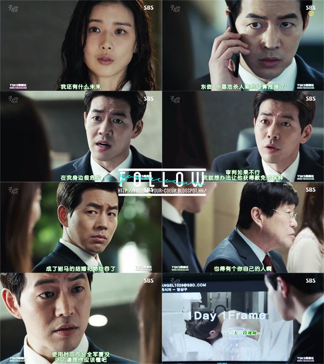 短短的總結這集:之前的集數拖得太長?所以這集秀妍、正日和東俊一起入罪,感覺好像有點快?而且感覺上東俊的爸爸真的好像打醬油,每次出場都很突然,又沒有怎樣描寫過父子的場面,好像用來填補時間一樣。所以如果可以多加描寫感覺會更好?因為我覺得東俊跟爸爸的關係比跟媽媽的關係更有拍攝價值?例如二人的關係轉變,這些其實都值得寫進去的?