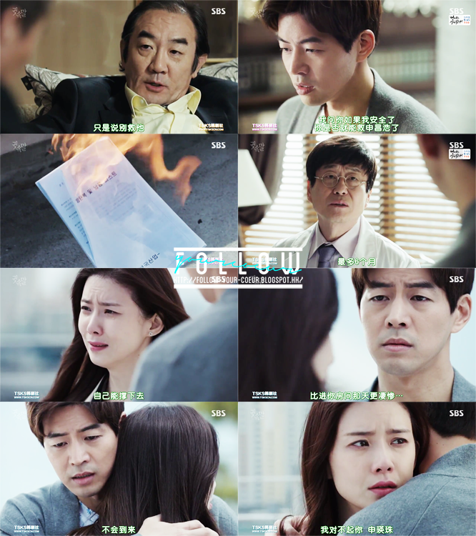 為了要保住英珠爸爸的命,東俊去找爸爸,叫他不要失手。但是他說只有那份文件消失,他才肯如常進行手術。英珠最後做了一個很痛的決定—為了保住爸爸的命,她將那份很難得到的文件一把火燒了…可是更痛的是…即使東俊爸爸沒有失手,英珠爸爸的肝癌情況已經惡化了,所以就算手術過後,他也活不了多久…