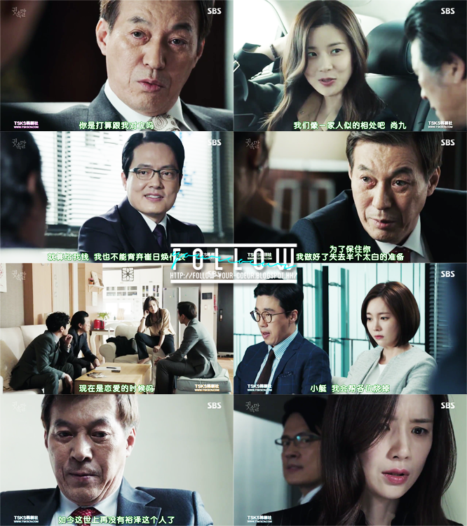 還真佩服大家到了最後一秒也不願放棄…一煥為了救女兒,決定將所有罪都包攬在自己身上,然後又將他們所做的事轉向歸咎於宥澤,指他為了保住兒子而弄了這麼多後續出來。而一煥亦將判決書的罪名推至宋秘書身上。最後當然英珠又找到不同的證據來反駁他的指控。