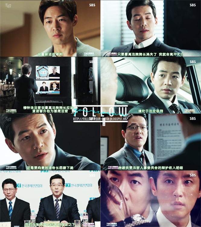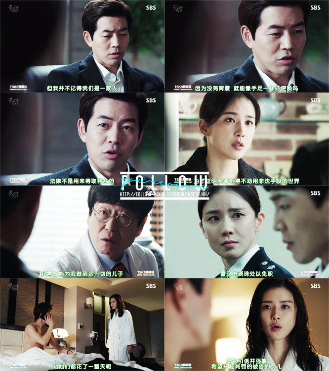 覺得英珠真的超帥!對著個惡棍用平語,尚九不但沒有生氣,還因為被追殺而屈服了英珠的威勢下!秀妍一方想靠尚九證明她的證言;正日想靠尚九推翻秀妍的證言…秀妍得到東俊提醒下,終於覺得再被尚九壓下去不是辦法,所以主動將尚九交給警局,然後希望他被警察捉住。而正日知道東俊派了英珠他們去找尚九,但是他又不能出面跟尚九見面,因為一見面的話就會有收賣嫌疑,所以給了錢尚九的手下,想要買兇殺死他。最後當然英珠他們的及時出現救了他一命。