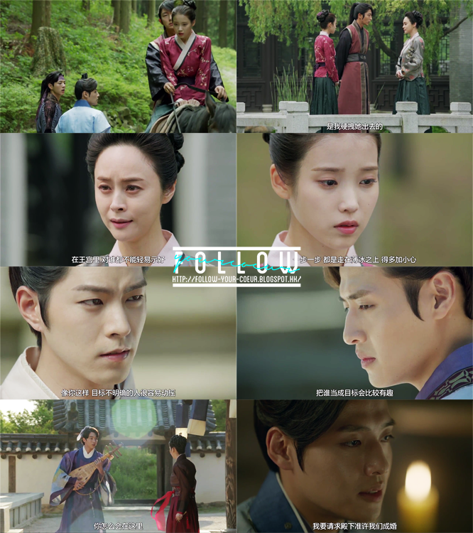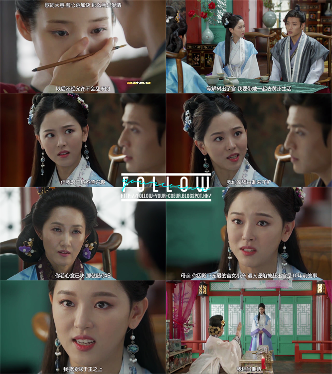 因為王銀的婚事,祈雨祭原本賜宮女出宮的機會取消了,解樹要繼續留在皇宮…她說只要王子可以等,她都可以等…(是不是只有我覺得二人的感情進展太快了,好像一下子就愛得很深了?)