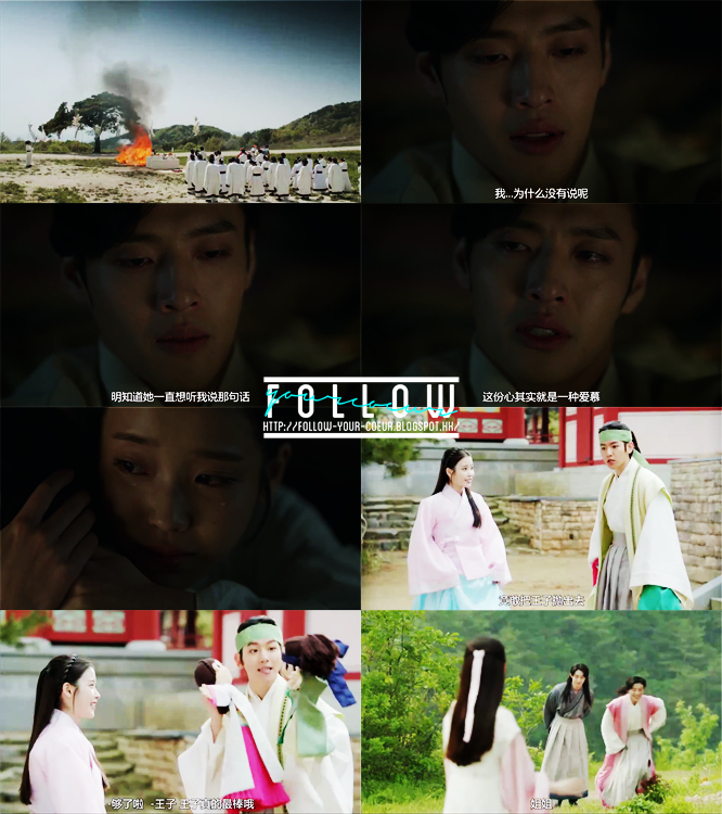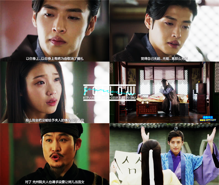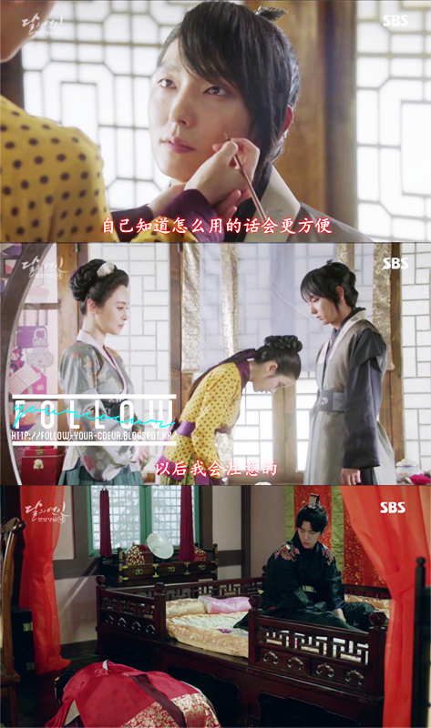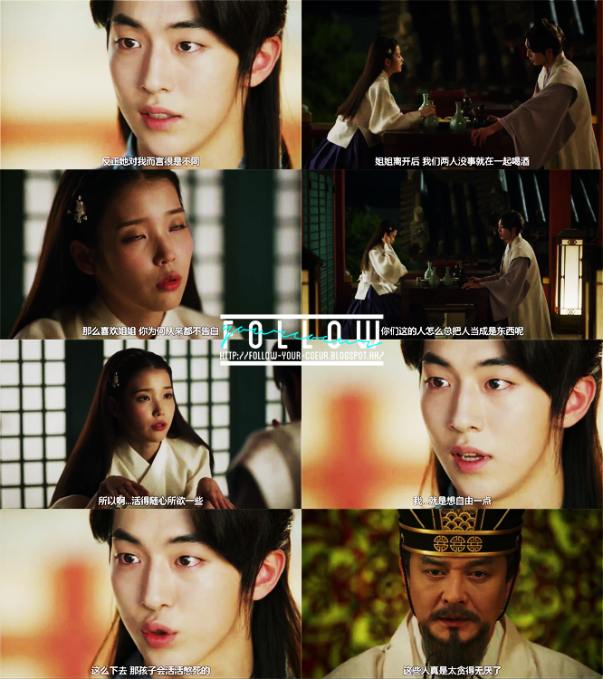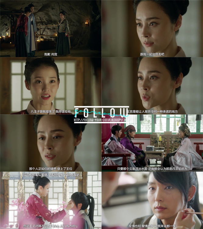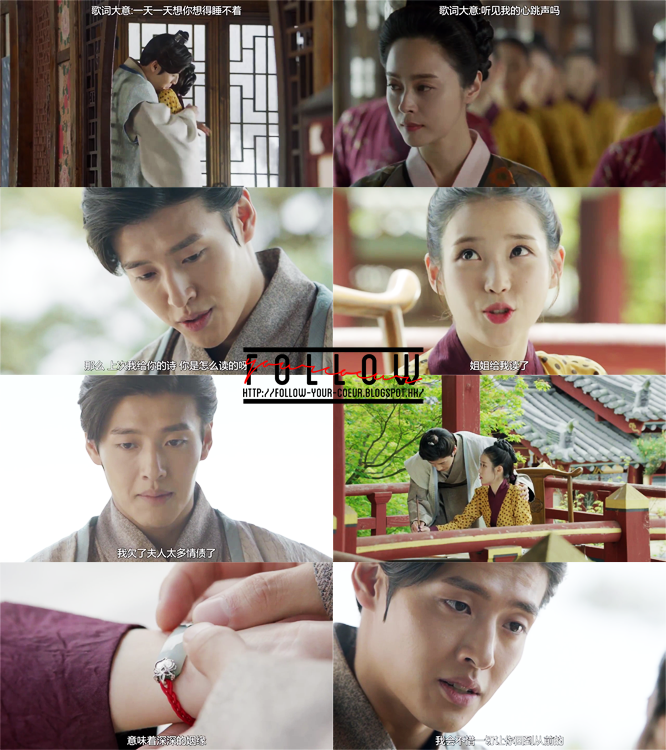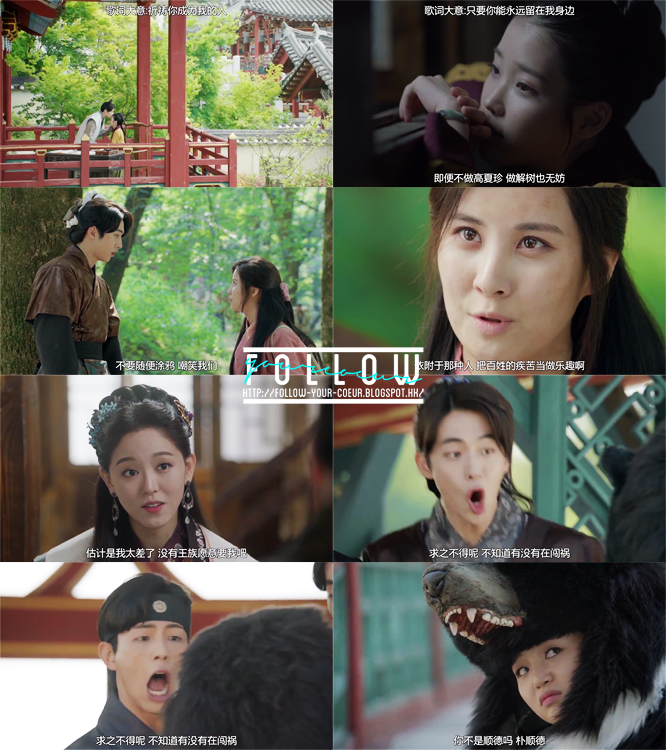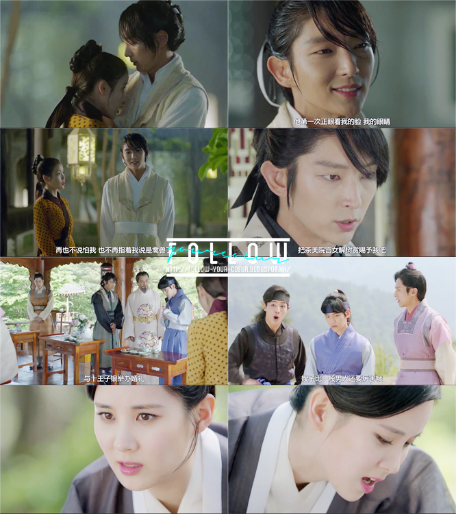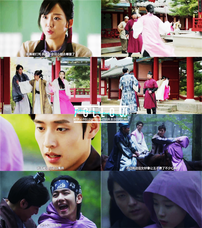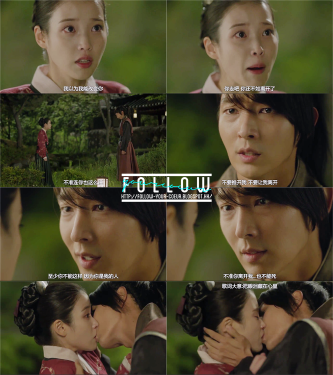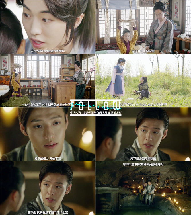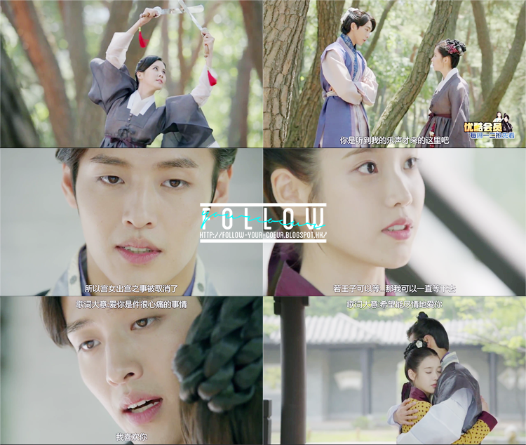 (不知道是不是隔了一星期沒有看,覺得一切的進展都很快…連在宮內都很「明目張膽」地抱抱…雖然是在角落抱,但是進展真的有點快…感覺上其實吳尚宮是知道解樹跟王旭互相愛慕,但是不好破壞…不過前2集姐姐才死啊…明明那個時候還是尷尷尬尬的…而且當王旭發現原來是姐姐讀詩的內容給解樹聽的時候又表現得一副內疚的樣子…所以到底王旭的感情是怎樣的…對姐姐感到抱歉但是跟解樹又發展得很快算什麼…- – 我最討厭的是他每次說情話都是說我不會再讓你一個人,什麼什麼的…但是你說了這麼多次都做不到…對的現在站四樹站得穩穩的XD)