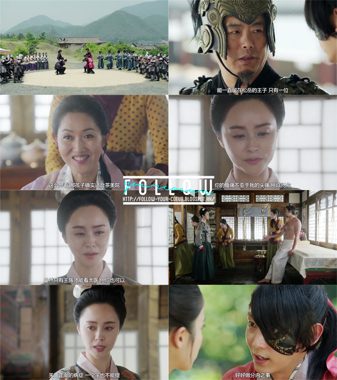 完了祈雨祭以後王后劉氏很生氣,因為王堯沒有把握好機會立功,言語間暴露出自己的野心—其實不是為了幫兒子登上皇位,而是幫自己登上皇太后的寶座… (王堯…你也甘願繼續被利用下去嗎?好好的兄弟關係因為一個女人的野心都搞垮了…) 同一時間,因為這次王昭立了大功,得到了太祖的信任,終於第一次被太祖正視了…第一次感到溫暖了…(昭啊T_T)