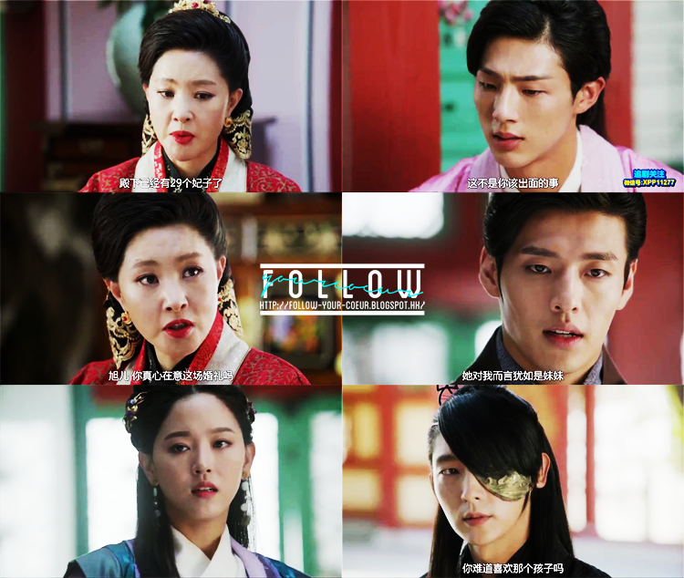 王子們當然不會就此罷休,全部都去了找自己的母后祈求阻止這場婚事…(解樹其實你很幸福T_T 全部王子都求情啊!!!) 連妍華都發聲了XD (因為不想解樹位高於她,更甚的是不希望王室鬥爭再添一名成員,瓜分王室的未來…) 王郁母親早逝,只好找王昭幫忙…王昭誤會王郁喜歡解樹…
