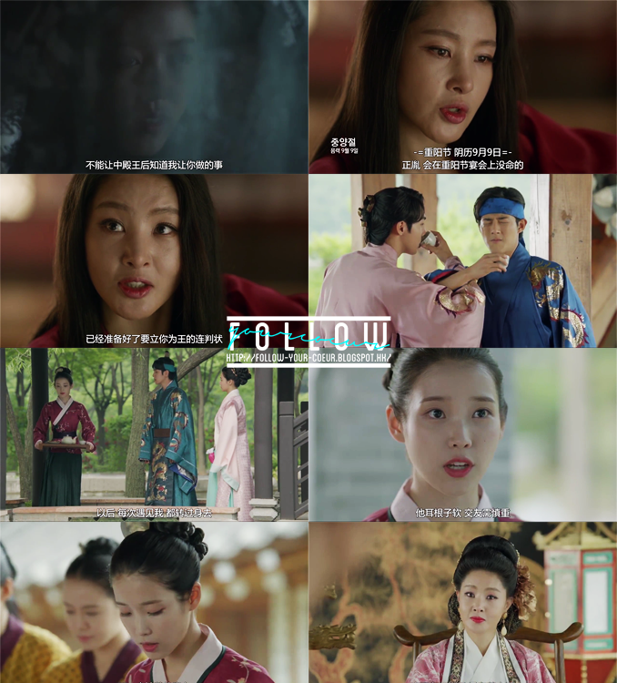 妍華公主和王后劉氏的聯手開始了,她們打算在重陽節毒害正胤,妍華公主還偷偷叫人嫁禍解樹…王后劉氏又一次游說王昭站在自己那邊,說得很好聽是信任自己的兒子不會在上位殺害自己的兄弟,但其實不是捧他上王位,而是利用他…還告訴他她會在重陽節下毒毒害正胤…但是無論王昭說不說出來他都會被懷疑,因為他說了出來王后就會說是為了捧他上王位而做的…(這招真心佩服…夠毒…所以說最毒婦人心啊…)