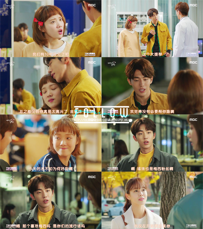 帶了福珠出去還責怪她被人勾搭LOL (男生吃醋很可愛~~) 福珠告訴他自己做兼職是因為想賺錢學鋼琴,她說自己可以在俊亨結婚的時候幫他彈琴,俊亨就叫她不要彈,就站在他身邊好了。(啊…神級告白???直接結婚吧XD)