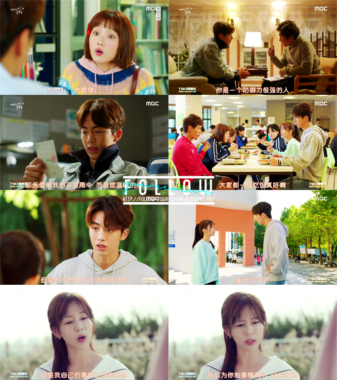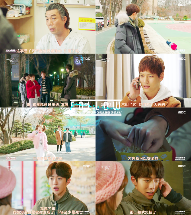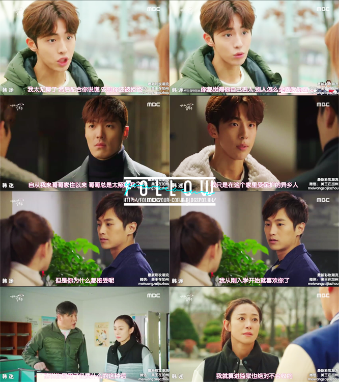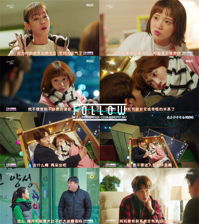 福珠被詩妍罵完心氣不順,所以去了善玉和蘭熙的房睡。俊亨知道了因為自己的緣故令福珠去診所的事被揭發,所以特意叫了她上天台跟她道歉。但是突然有老師來巡視,所以二人就抱在一起躺下了。(有點甜啊,還撩妹♥♥♥ 藉機抱著福珠呢~~~ 這裡的福珠也超Q的,可能因為圍巾的緣故,說話的時候聲調有點可愛…不懂形容哈哈,你看看就應該明白我說什麼了?)