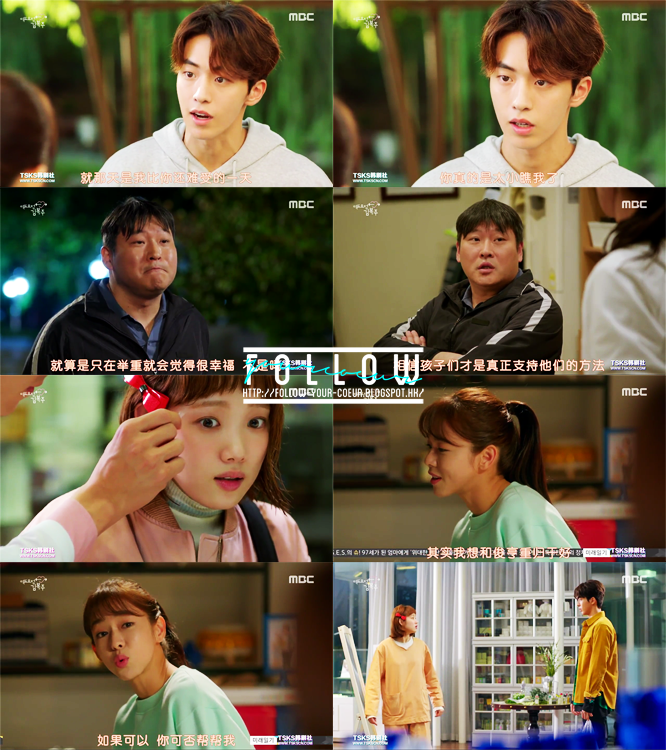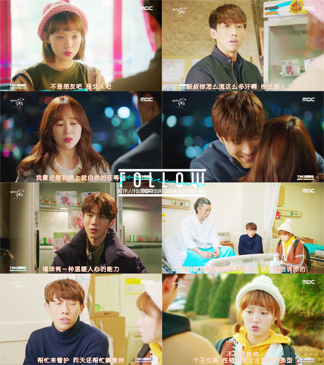 然後俊亨用手推車帶她回家LOL 因為聽到福珠發夢說叫俊亨負責,爸爸以為他對女兒做了什麼,所以就去質問他。然後俊亨說他們絕對不可能。聽到他這樣說,爸爸又不服氣,說自己女兒也很好。XDDD 爸爸和叔叔真的很好笑,叔叔以為他們在一起了,還叫他侄女婿啊哈哈哈…