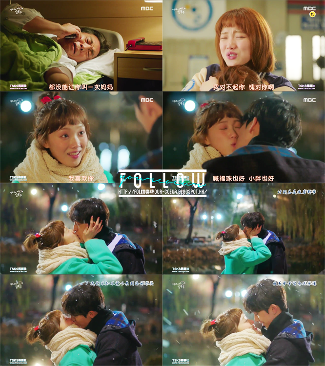 福珠經過這些事之後終於明白自己原來喜歡了俊亨,所以約他出來告白了。然後連環KISS 4次!!(又到實話時間,是很甜很甜的畫面,但是我看到有人讚這幕很自然…只有我一個覺得有點尷尬嗎?聖經抓著俊亨親的那一下和俊亨抱住福珠親的那部份真的尷尬啊???柱赫的小表情真的要改改!每次驚訝都是同樣的表情O_O||| )
