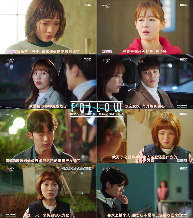 俊亨知道了福珠去了堂哥的減肥診所之後,幫福珠隱瞞了真實身份。也是因為他知道了這個秘密,福珠就被俊亨抓住了。而詩好也繼續窮追不捨… (笑死我了,又提起梅西XDDDD 這部戲的笑點都很搞笑!所以看的時候真的很開心很輕鬆XD 詩好這種女生確實不討好,在的時候又不珍惜,現在感覺什麼都沒有了又想抓住別人不放。要怪就怪自己當初太自私吧,不能再自私下去干擾別人的生活吧?)