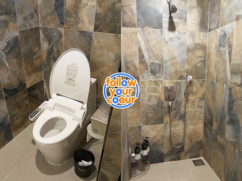 洗手間空間十分寬闊,水溫和水壓都很穩定。坐廁是智能式的,可以洗屁屁和加熱。(不是所有人都適用吧XD) 缺點是一邊來說韓國的坐廁的水壓都較低 (?),不太能容納太多廁紙,所以一次不要掉太多廁紙喔~