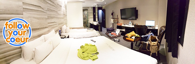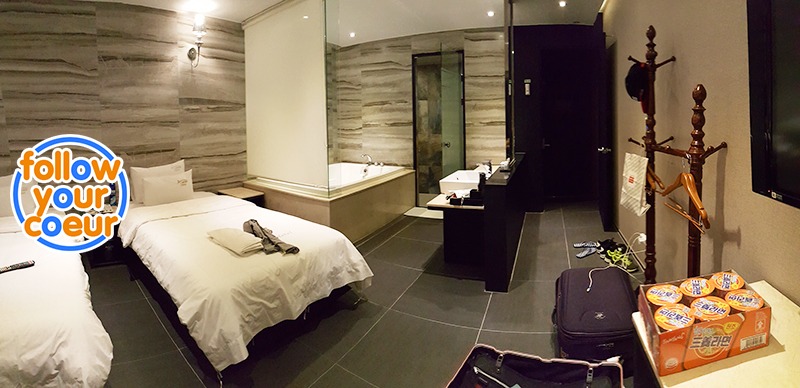 看單價要HKD$1,500 (TWD$6,000)好像很貴,但因為我們訂了頂級雙床房,在韓國不太容易找到可供3人住的酒店,加上房間內有熱水按摩池,每人每晚HKD$500 (TWD$2,000)算是可以接受了。跟家人一起旅行都會想他們住得舒服一點,這個價錢和地理位置我覺得很不錯啊。如果沒有特別的酒店設施要求,一家大小來的話十分方便呢!
