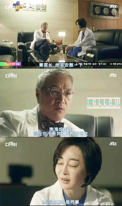 然後他又回去看自己的患者 聽著海成跟進患者的情況 乭美覺得有點受不了