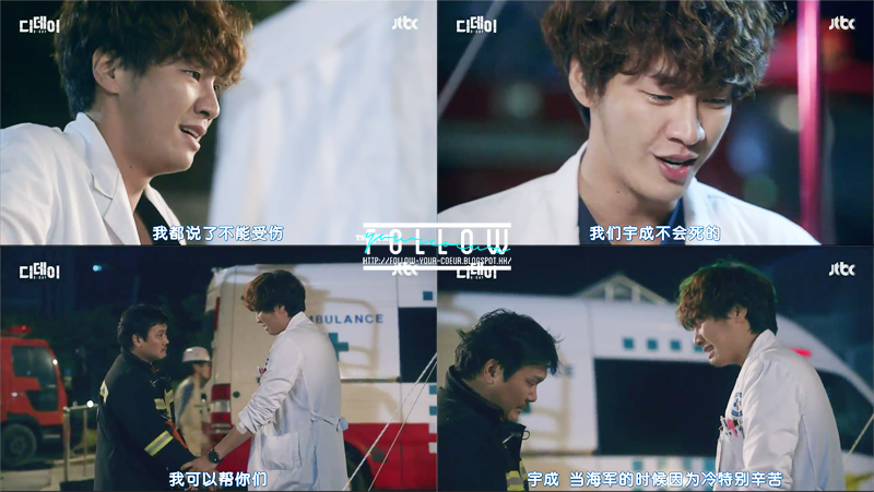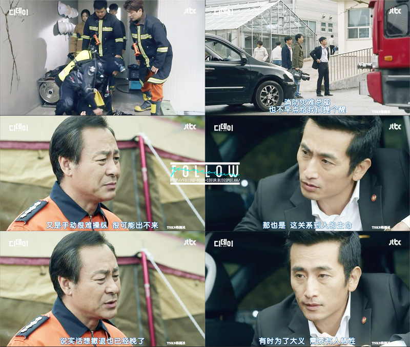 一開始另一個消防員(基浩)想阻止他 但宇成說要留一個人作指揮