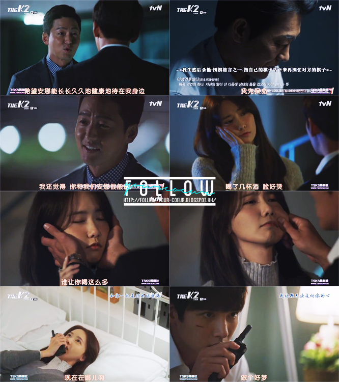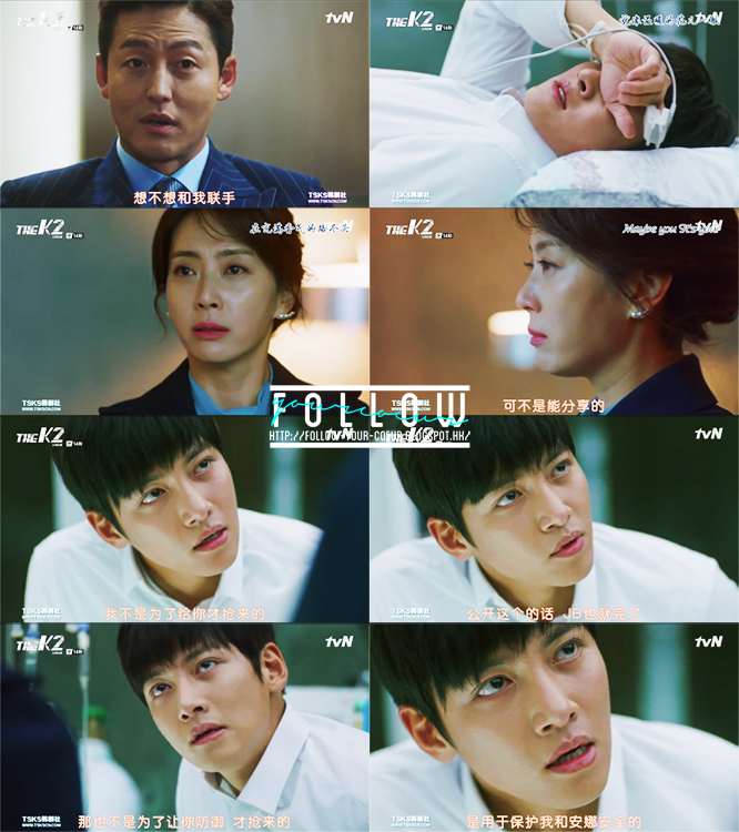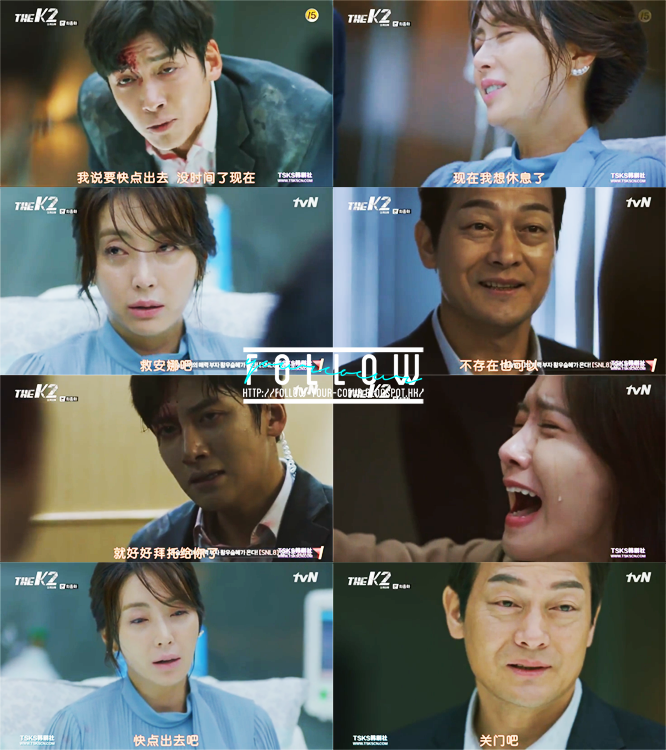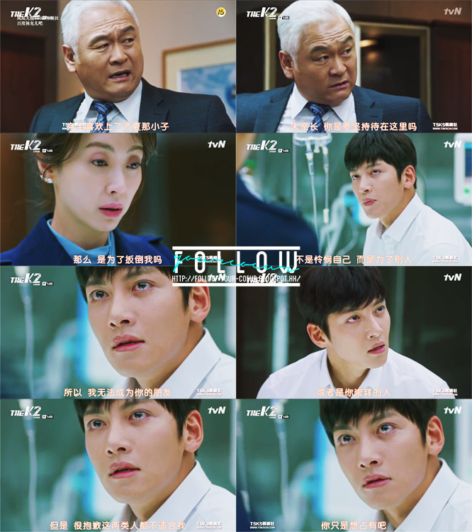 然後看送別安娜那部份有點小感動—個人對於這些離別戲份比較敏感。安娜臨走前叫金室長好好幫她照顧載河,金室長感到好奇,問她是不是忘記了當初她很想殺掉他們。安娜說沒有忘記,但她會努力忘記—因為她現在只能夠相信金室長能夠好好幫助載河康復。面對一個應該要恨死自己,但是為了自己愛的人而願意放下仇恨,相信自己的人,金室長大概也有了一點愧疚。我對於本集的情感瓜葛描寫給個100分!