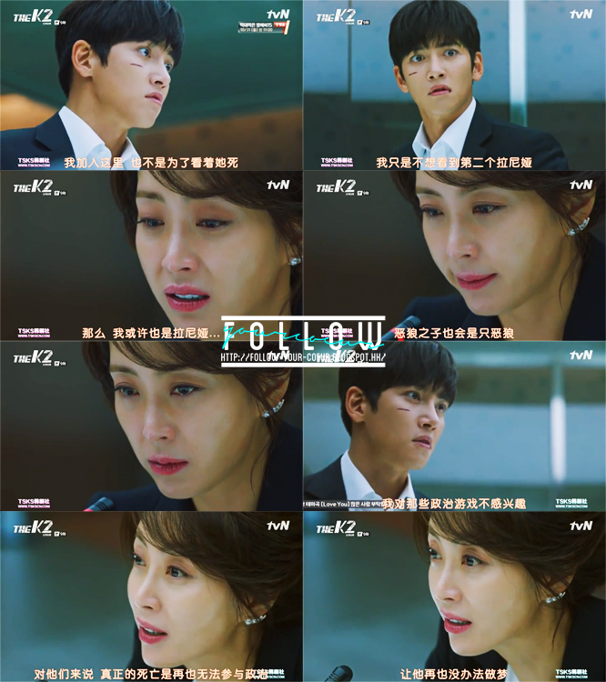 整場戲都十分有張力,十分緊湊,兩夫妻的角力,雖然我覺得趙成夏前輩可以再爆發多一點~ 不過整場戲就是很好看。由一開始世俊進門打了宥真一大巴開始,到結尾宥真威脅世俊如果要繼續選總統的話就不要惹她,整場氣都很精彩。完全被前輩的氣魄驚艷到!!首先是宥真被世俊打了一巴後,面無表情說自己沒關係那個樣子真的完全表達到宥真心碎的聲音~ (PS:打女人的都是渣男~~~~~~~) 被世俊打完的宥真氣勢不但沒有減弱,反而還爆發了…說自己有能力撐起世俊,也有能力跟朴守冠合作。